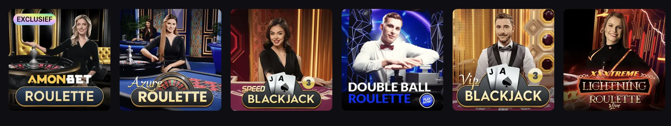 | Live dealer game | Varianten bij Amonbet Casino online |