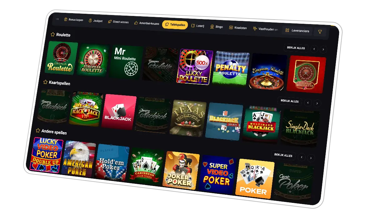 Nederlandse gokkers hebben heel wat interesse in de digitale versies van klassieke kaartspellen. Dit is ook waarom je bij Amonbet Netherlands heel wat verschillende tafelspellen zult tegenkomen zoals: